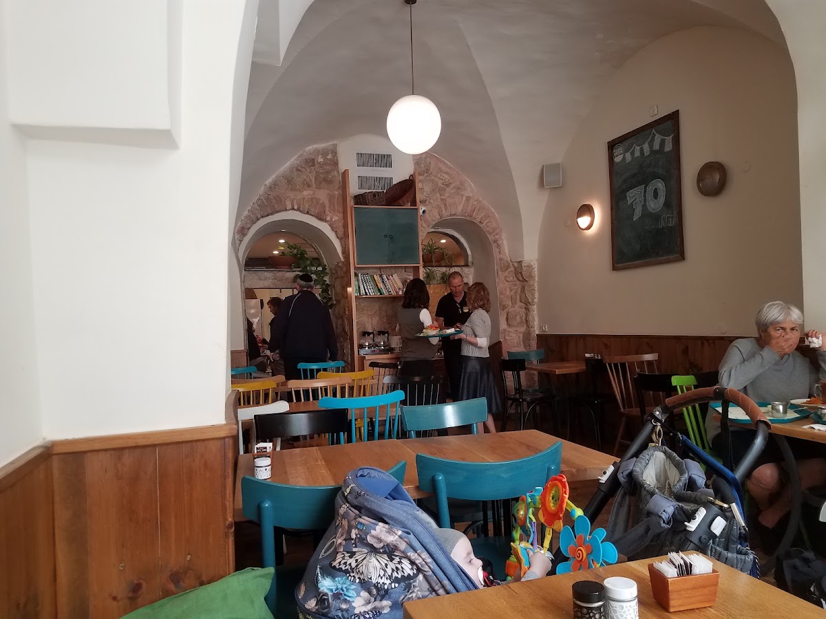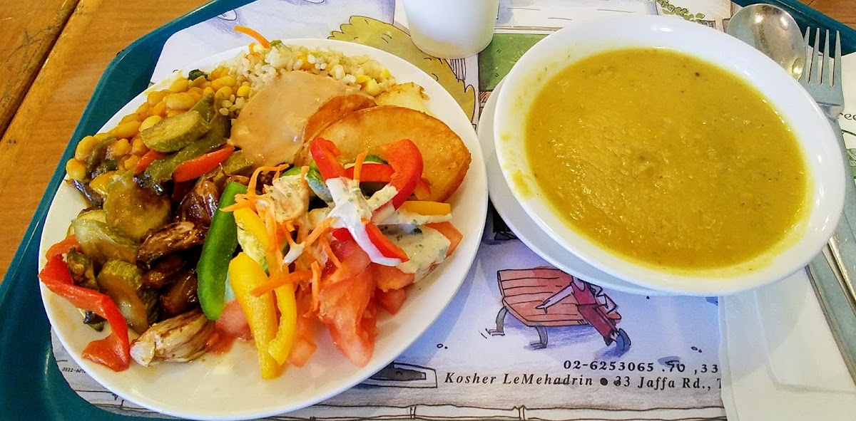 Small nice restaurant with freshly made vegetarian and vegan food of good quality and variety. You pay for the dish you can fill with as much food as you like. Excellent cakes. Fair prices. Suggested also if you want something different from typical Israeli food